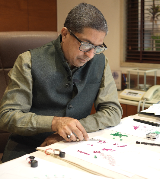 For Harshad Soni, the thrill of sourcing hasn’t changed since he was fifteen. Growing up as a goldsmith for the royal house of Vadodara, he was raised on the adrenaline of seeing world-class treasures in their most honest state. Today, that same child-like excitement returns every time he crackles open a parcel of raw “rocks.”
