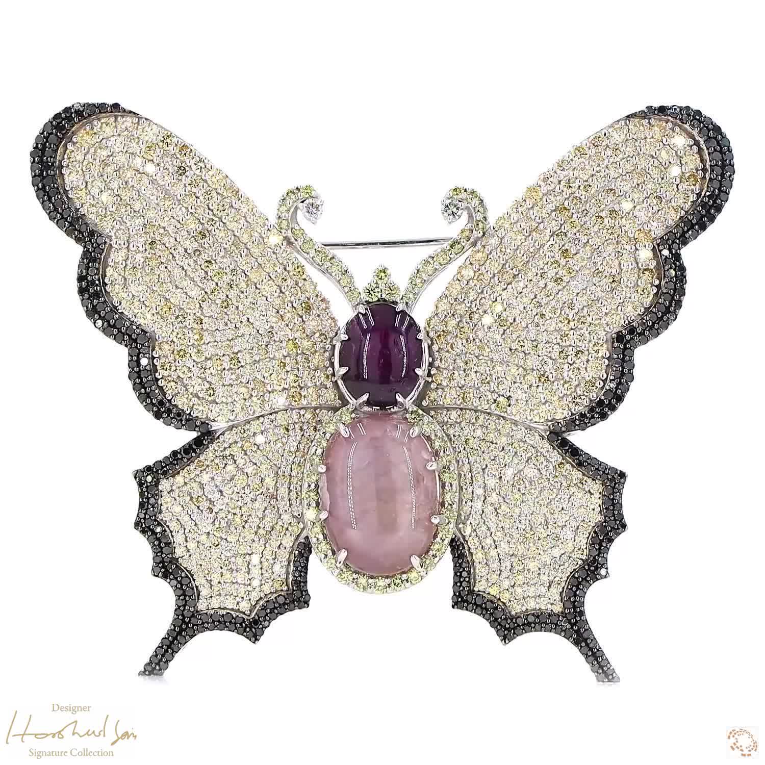 Availability: In StockMost butterflies chase the sun but this one was born from the dark shadows of the moon. Its wings are covered in black diamonds by the visionary Harshad Soni to give them a texture that looks like shimmering velvet. At the very center are two rubies that glow like hot coals in a dark room and give the butterfly its life. It is a piece for the bold who know that the night has its own kind of beautiful light. This butterfly does not need the sun to shine because it carries its own heat within its ruby heart.