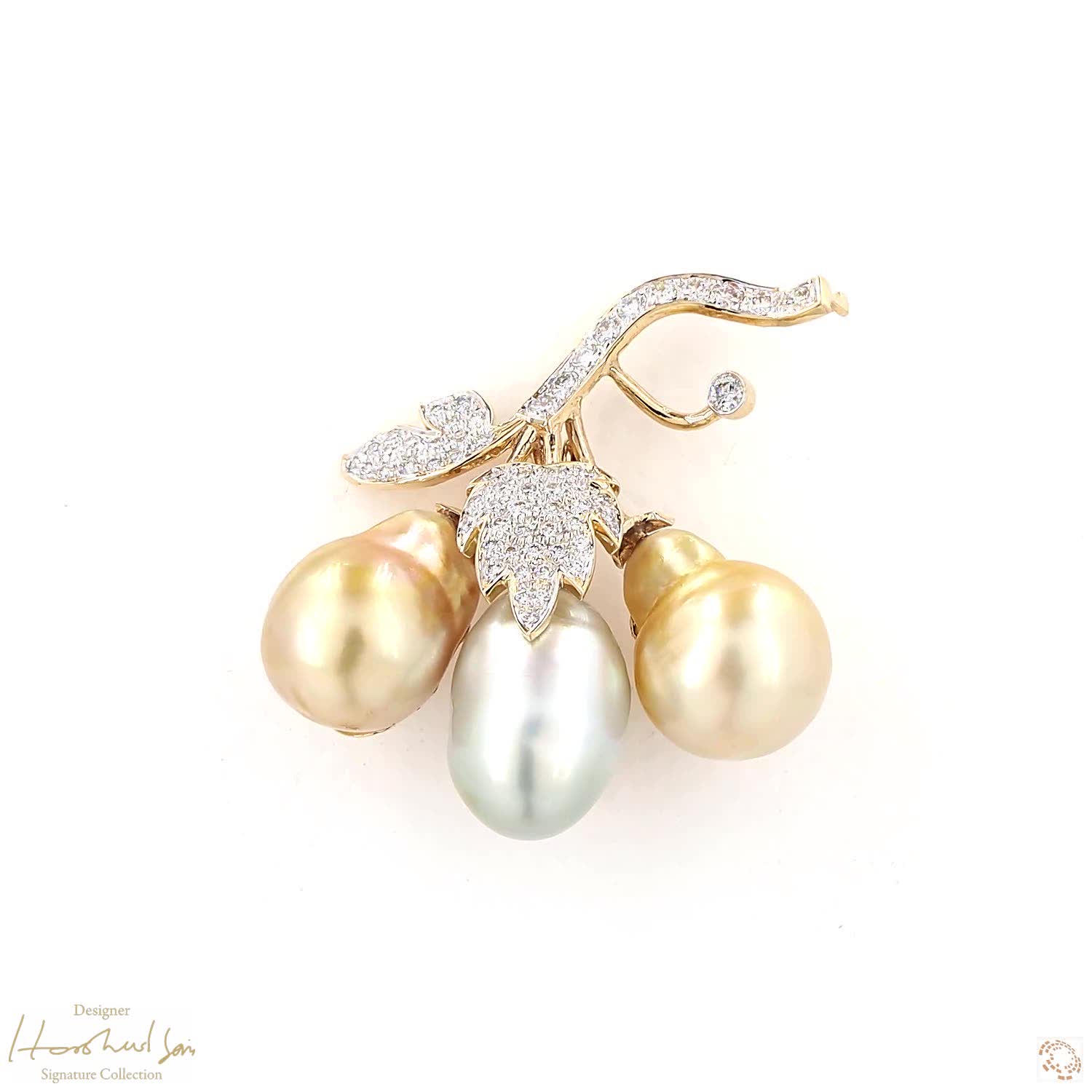Availability: In StockThese three dark pearls are like three drops of ink in a clear pool. The visionary Harshad Soni arranged them together with diamonds to create a look that is very sophisticated and modern. The pearls have a natural, wavy shape that makes them feel soft and alive. It is a powerful piece that shows how rare beauty can be both simple and very grand at the same time.